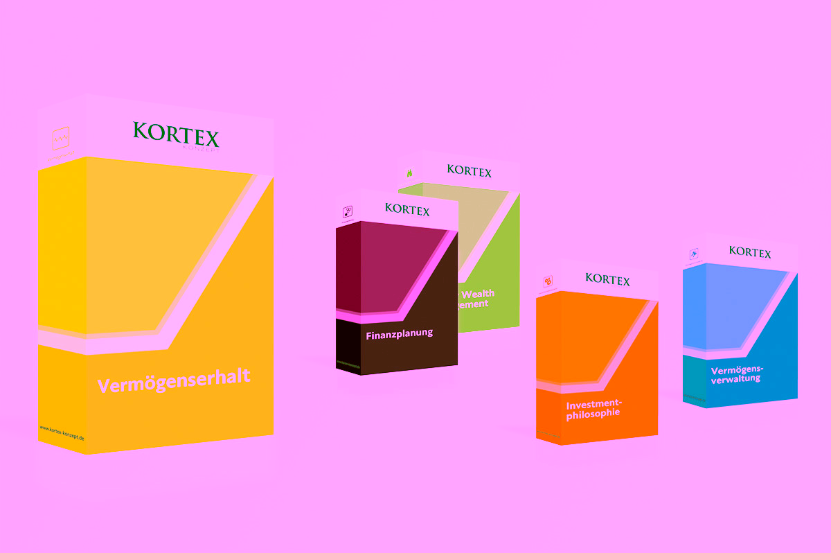 Für die Firma Kortex Konzept GmbH in Ulm wurde eine Datengrafik zum Thema Family Wealth Management für die Print- und Digitale Benutzeroberfläche gestaltet. Desweiteren wurden Produktboxen zu unterschiedlichen Themen für den Online-Auftritt entwickelt.